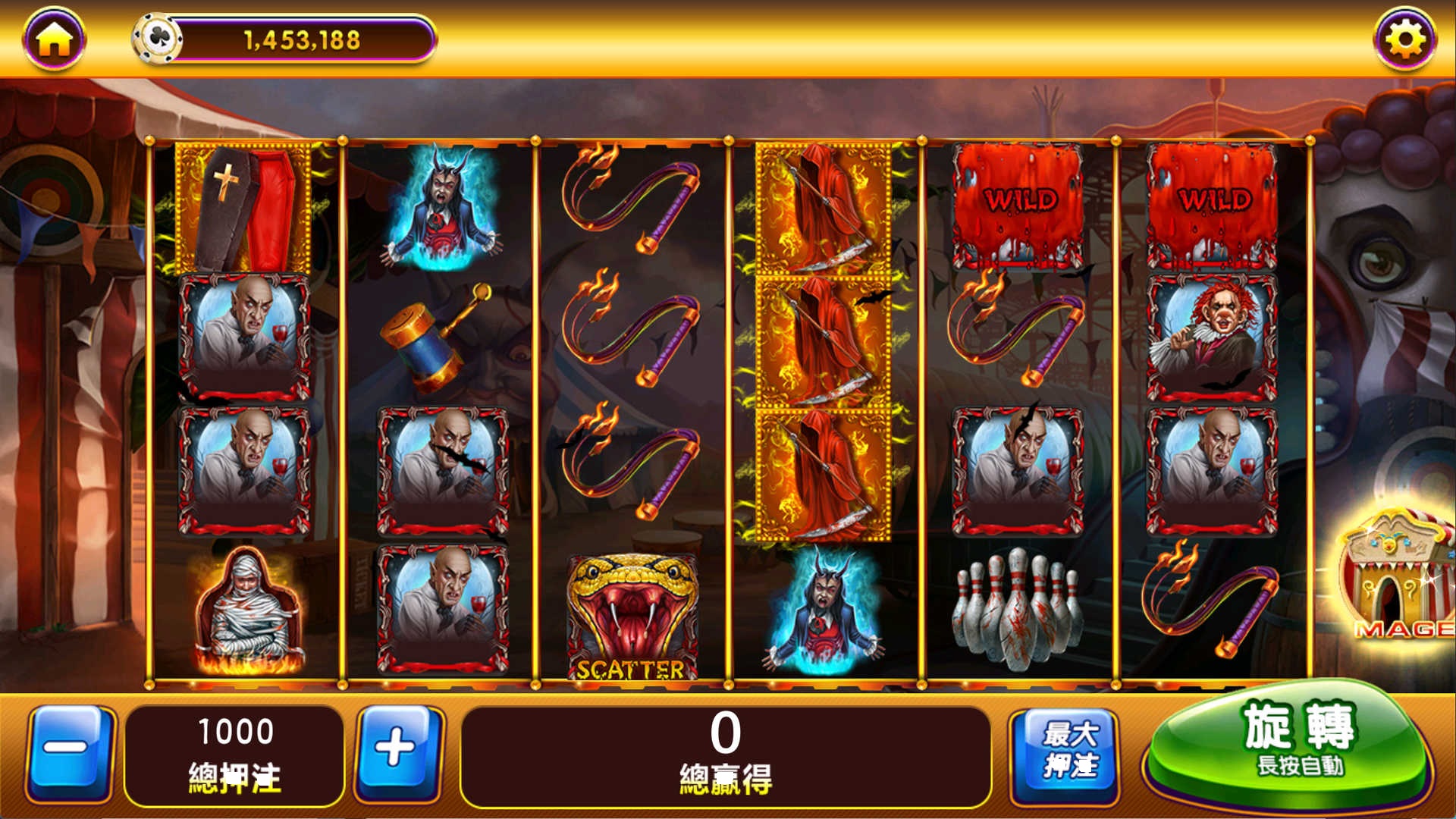 财Shen、大红灯笼、疯狂Ye蛮人、恐Bu马戏团、福星Gao照