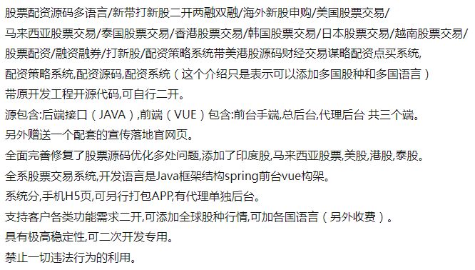 全开版Java框架结构spring前台vue构架海外股票交易(69888元)